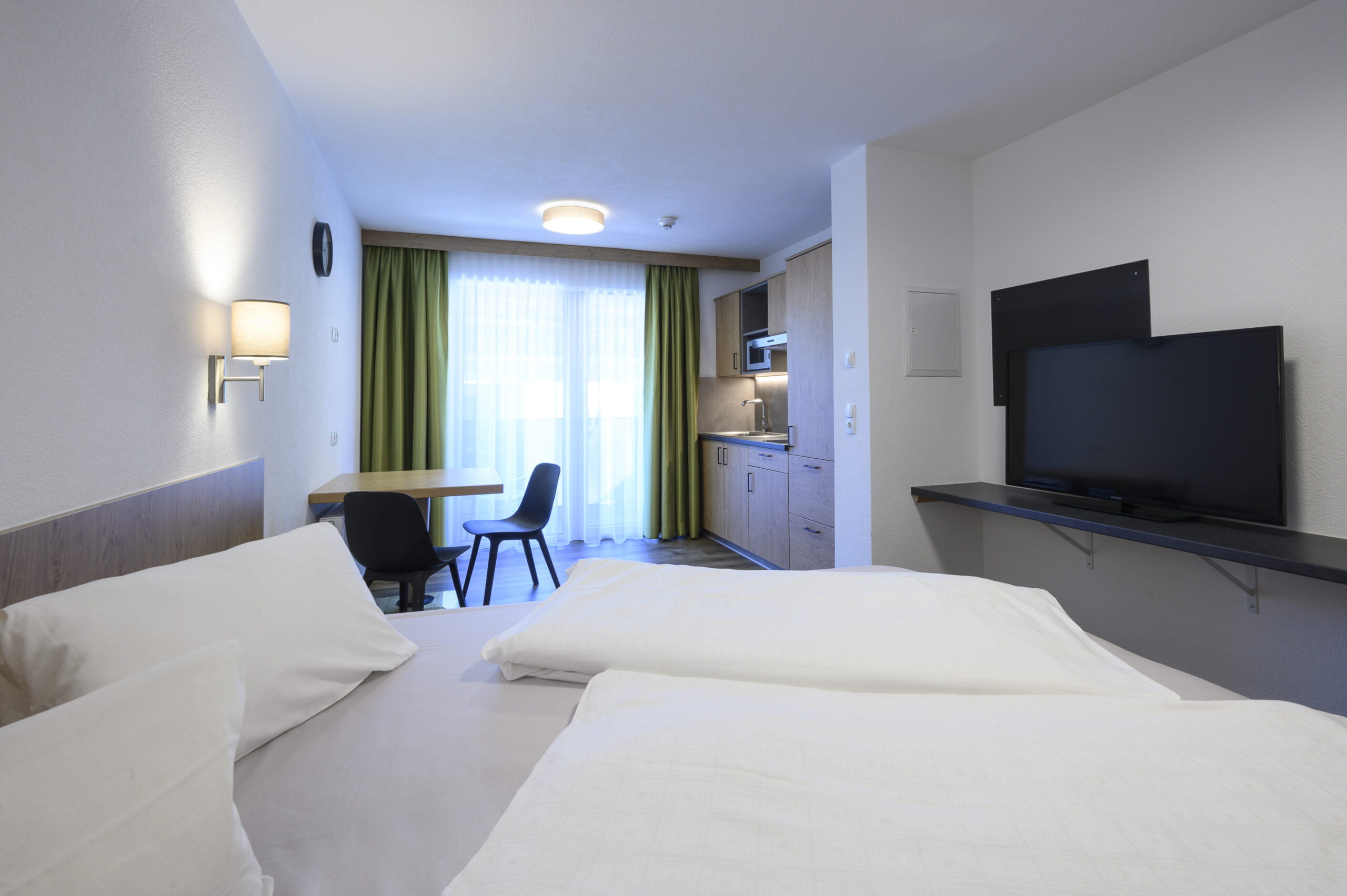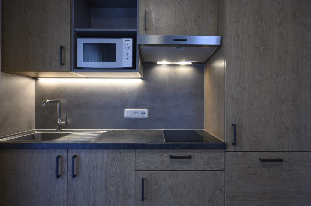 Unsere Team Lodge bietet Dir ein komfortables und modernes Zuhause, nur 6 Gehminuten vom Hotel entfernt. Mit 30 Wohneinheiten in zwei Kategorien – Studio und Einzelzimmer. Du wirst Dich auf jeden Fall wohlfühlen.